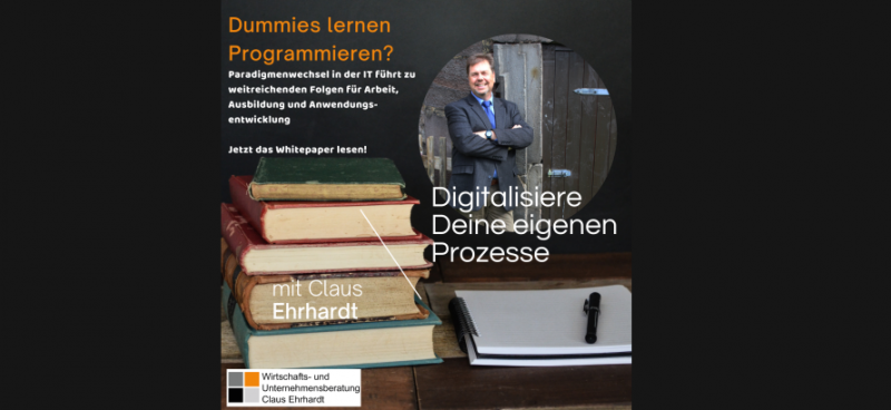 Dann kam die Erkenntnis in Form einer offenen Diskussion in der einschlägigen Literatur: Ich habe als "Dummie" eine gewisse Form des Programmierens erlernt! Mit Bausteinen und einer Plattform-Anwendung sowie mit Drag and Drop Menüs gelingt es, Web-Anwendungen ohne IT Abteilung sowie nahezu ohne Informatiker und Programmierer umzusetzen. WOW!